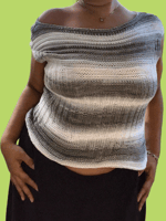 The Welt Top is a sleeveless garment worked from the bottom up, in the Round. The Body is knit seamlessly to the armholes, where the work is divided for the sleeves, then rejoined. The shoulders are shaped using decreases. Body shaping is achieved through welting, transitioning from horizontal Ribbing to vertical Ribbing. As these stitch patterns have different gauges, the fabric naturally draws in at the waist and widens at the hips and shoulders.